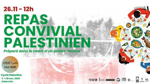 Du 15 au 28 novembre 2025, plusieurs acteurs associatifs, culturels et sociaux de Marchin s'unissent pour proposer un cycle d'activités autour de la Palestine. Dans un contexte de violences structurelles exercées contre le peuple palestinien, il nous semble fondamental de ne pas détourner le regard. Ce cycle entend visibiliser les réalités d'un peuple soumis à une entreprise coloniale génocidaire, qui vise non seulement l'élimination physique, mais aussi l'effacement culturel, identitaire et historique d'un peuple.