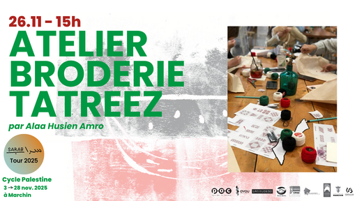 La broderie palestinienne traditionnelle connue sous le nom de tatreez, cousue à la main, est traditionnellement utilisée pour décorer les vêtements palestiniens. Elle raconte les histoires des villes et villages perdus, des coutumes anciennes, des vies passées et de la résistance.