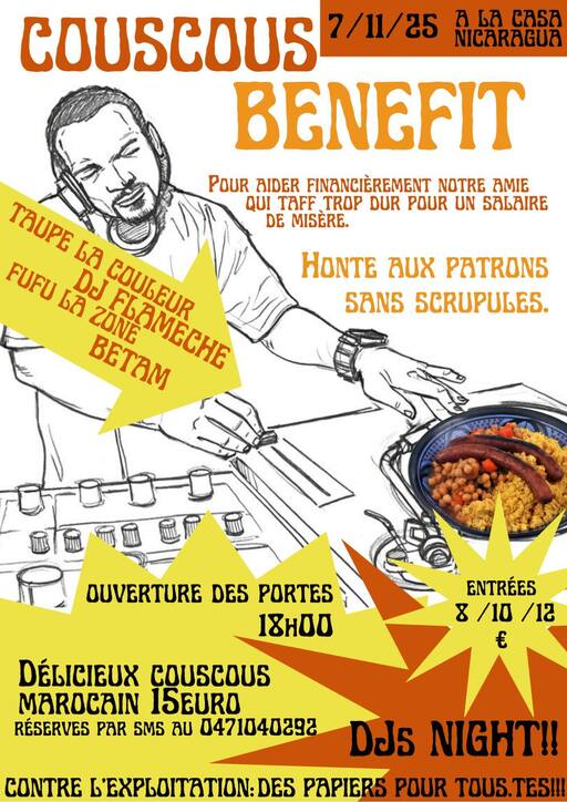 19H COUSCOUS (réservation souhaitée par sms au 0471040292)