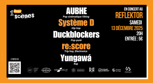 Au programme : AUBHE, Yungawá, re:score, Système D et Duckblockers - cinq projets, cinq univers, une même passion pour la musique !