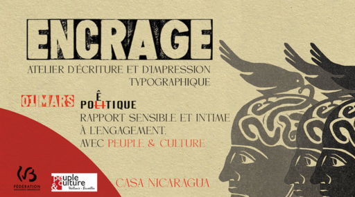 l'atelier d'écriture sera nourris par Alexandre Barthelemy de peuple et culture wb et Antoine imberechts pour l'impression typographique.